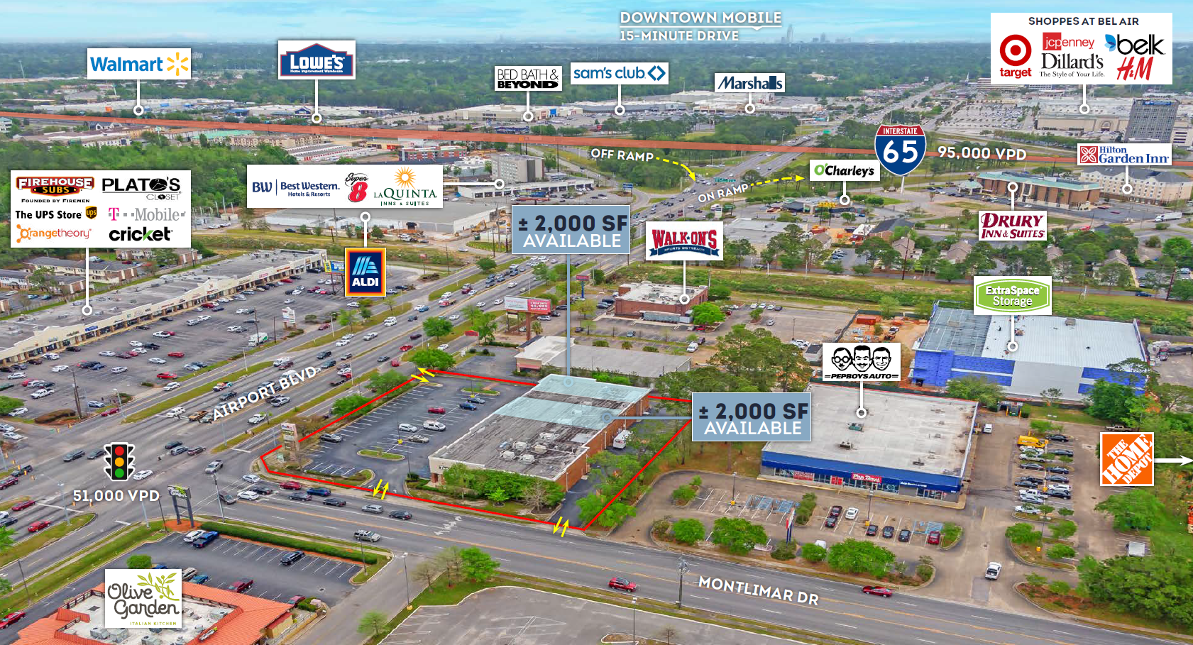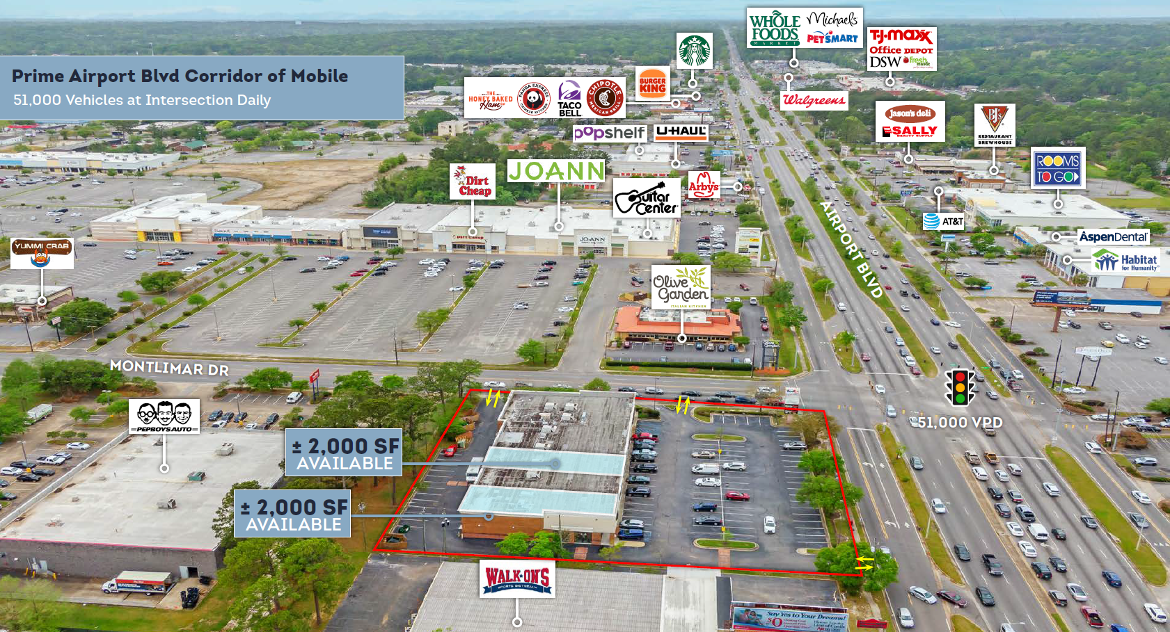 Located along high-traffic Airport Blvd retail thoroughfare – Excellent visibility to 51,000 VPD