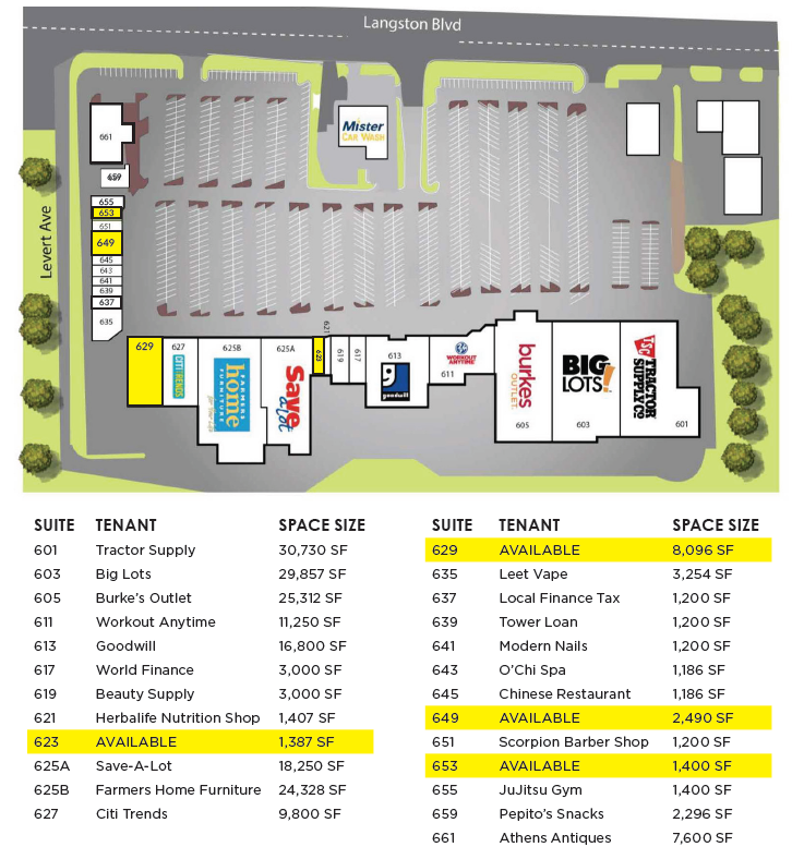 Join national co-tenants include Big Lots, Tractor Supply, Save A Lot, Farmers Home Furniture, Burkes and more!
