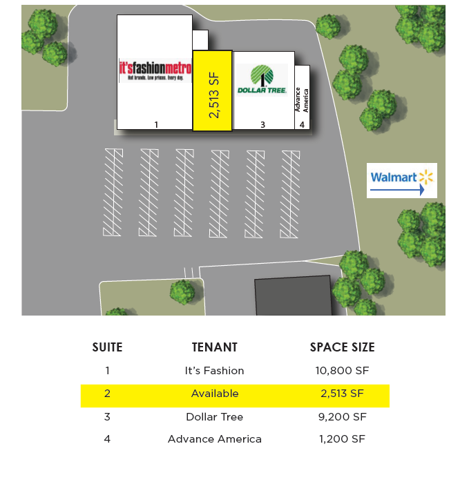 Join national cotenants Dollar Tree and It’s Fashion Metro