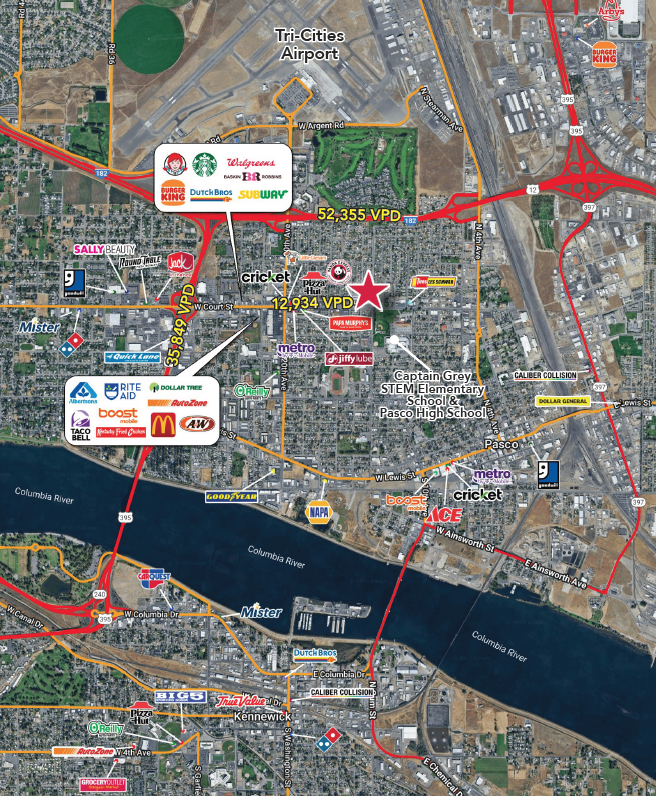 Located directly across from Pasco High School (+/-2,500 students)