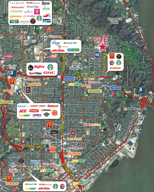 • Strong trade area just north of downtown Peoria