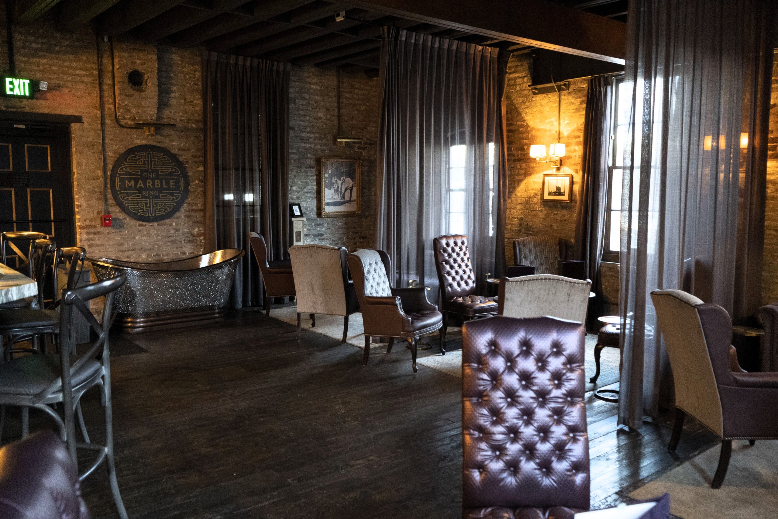 hidden, 1920s-inspired speakeasy, the venue is known for its intimate atmosphere, vintage charm, and immersive design. Tucked away on the upper level of the building, the space features exposed brick, classic architectural details, and a layout designed for an upscale cocktail or lounge concept.