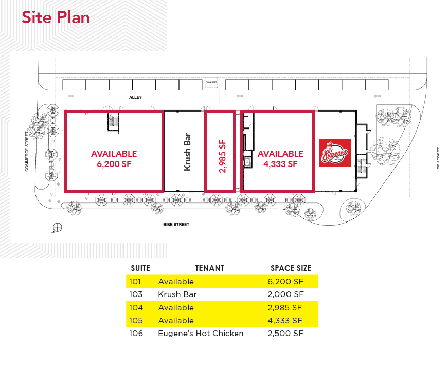 •  Available: 2,985 SF office space, 4,333 SF grey shell and 6,200 SF fully built out restaurant