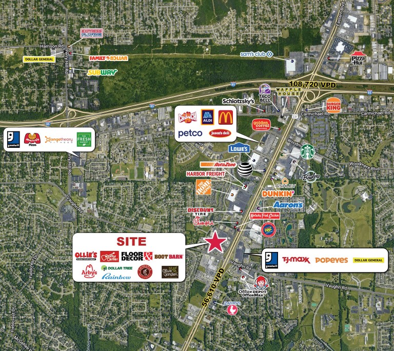 Other nearby retailers include Home Depot, Lowe’s, Conn’s, TJ Maxx, Party City, Petco & Harbor Freight