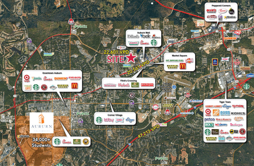 • Site is surrounded by national retailers/ restaurants and just minutes from Auburn University