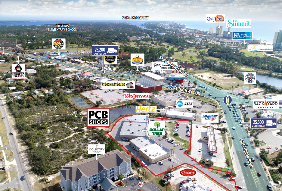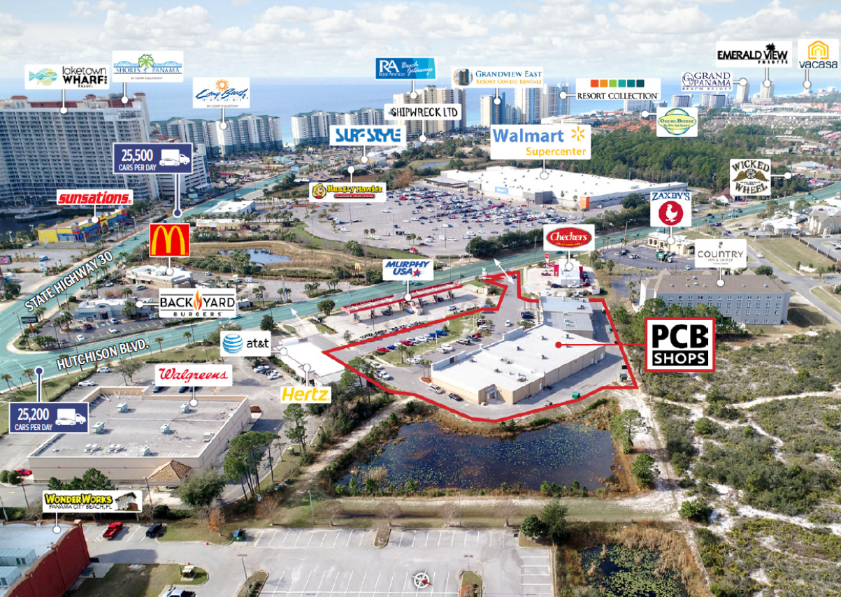 • Excellent location on two major thoroughfares traveling through Panama City Beach