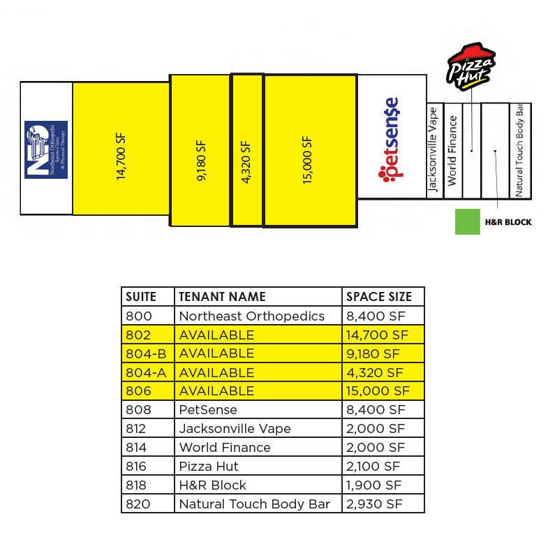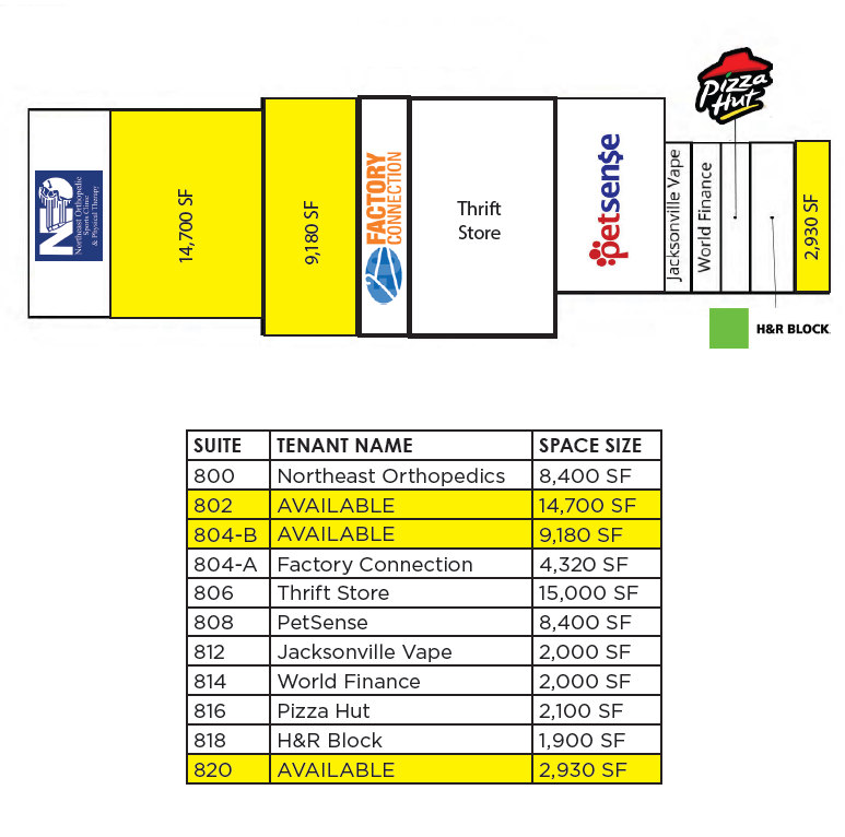 Center is ideally situated on the main thoroughfare in Jacksonville with visibility to more than 26,000 VPD