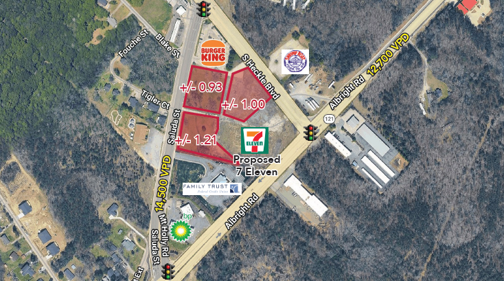 • Available for ground lease or build to suit: Three (3) lots at 1.21, 0.93 & 1.00 acres
