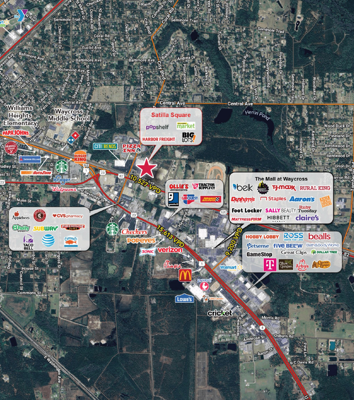 Located centrally near Mall at Waycross and Waycross Middle School and William Heights Elementary School